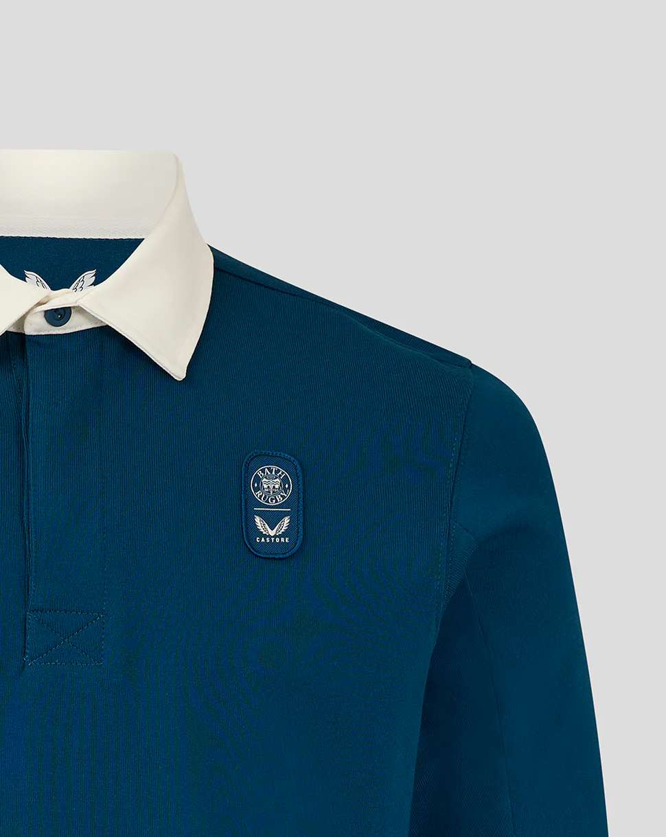 Description: Effortless comfort meets ultimate style in this Men’s Bath Rugby Dual Branded Long Sleeve Jersey Top. Featuring a sophisticated cut and sew underarm design complemented by secure ribbed cuffs and a side seam split for breathability, this Top blends athleticism with refined craftsmanship. Dominate the field with a dynamic print at your centre back.