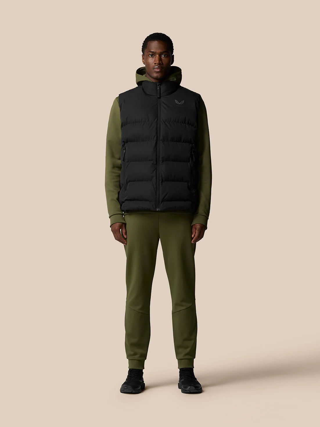 Description: Maximise warmth without sacrificing movement in this Menβs Puffer Gilet. Crafted from high-stretch woven polyester and reinforced with our signature water-repellent ProTek technology, itβs water, stain, and wrinkle-resistant. The sleeveless fit promotes full range of movement, with zipped pockets providing an extra layer of convenience.